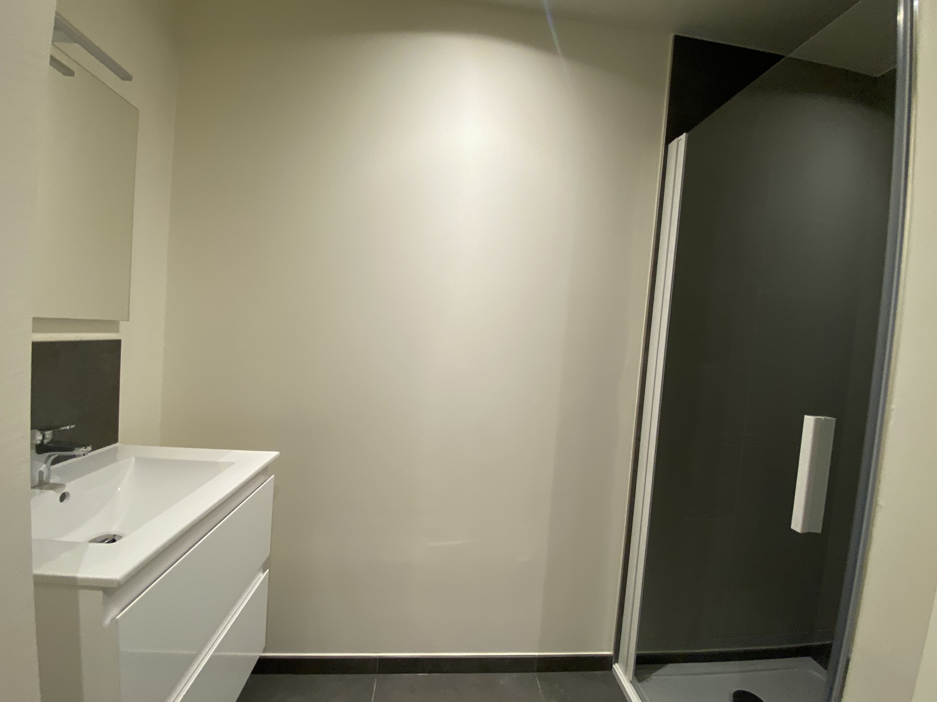 Entrée, grande salle de séjour avec cuisine équipée ouverte, 1 chambre avec placards intégrés et 1 salle de douche. Au sous-sol une cave, un garage et une buanderie commune complètent ce bien.