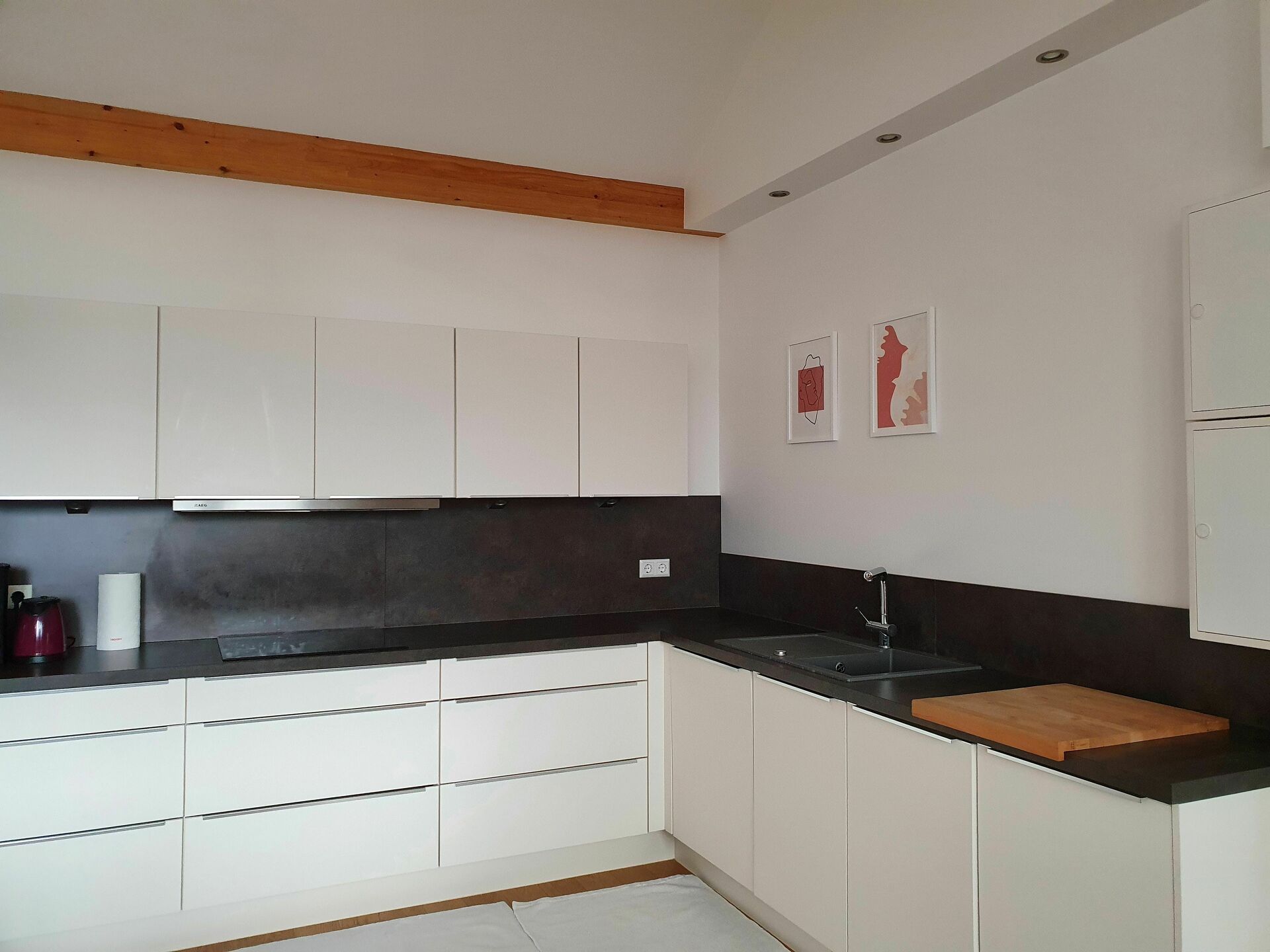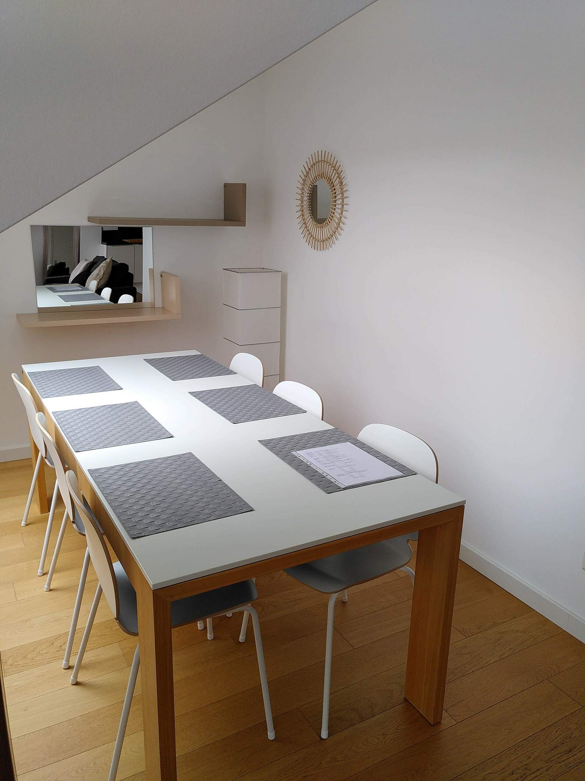 Un appartement meublé et équipé au 3ème et dernier étage sans ascenseur, comprenant une grande pièce de séjour avec une cuisine équipée ouverte, une chambre à coucher avec balcon et une salle de bains. Une cave et une buanderie commune sont à disposition au sous-sol.