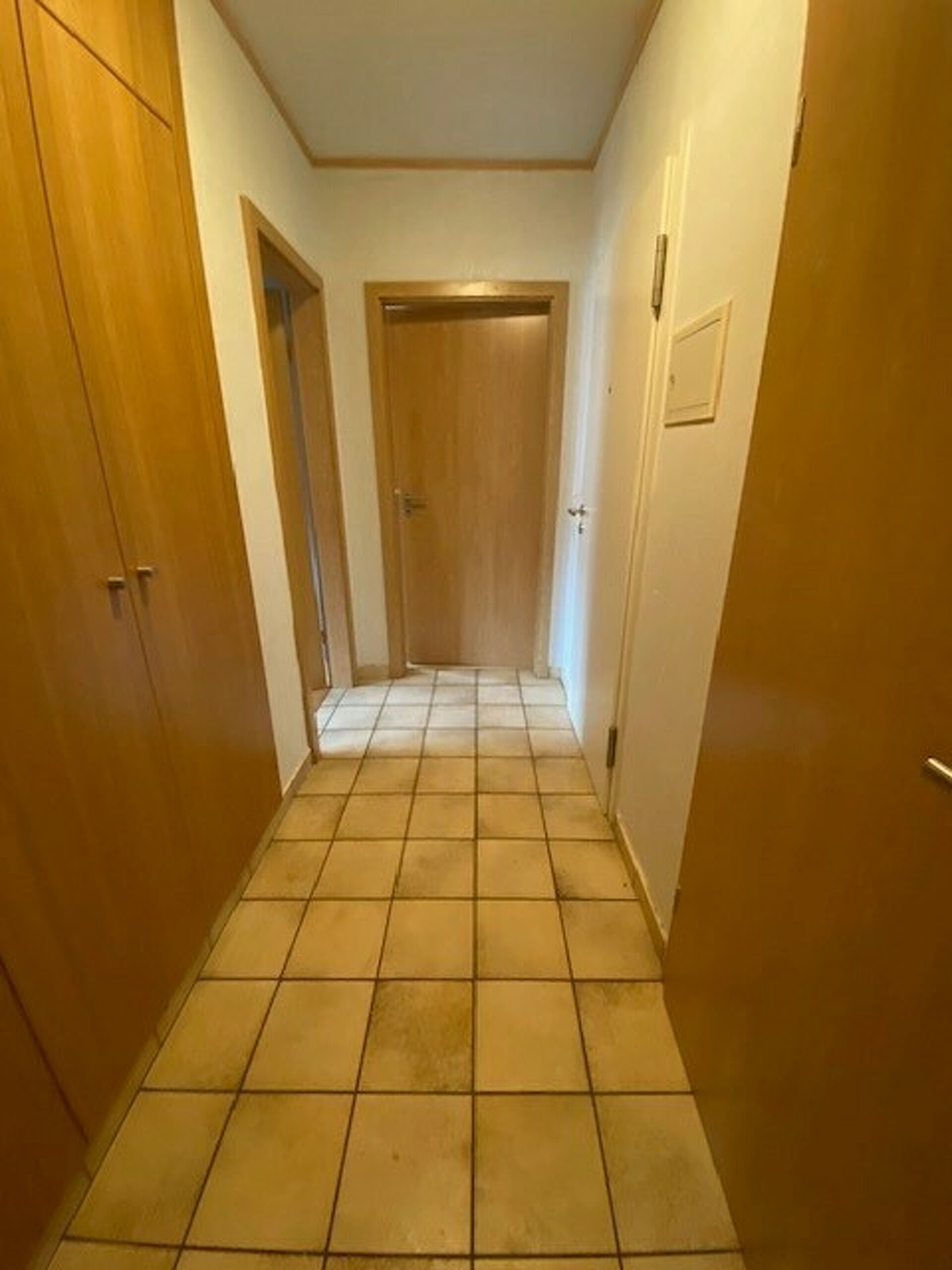Hall d'entrée avec placard intégré, une salle de séjour, une cuisine séparée non équipée, 1 chambre à coucher, tous 2 avec accès au balcon ensoleillé et une salle de douche outre à une cave et à un garage fermé au sous-sol