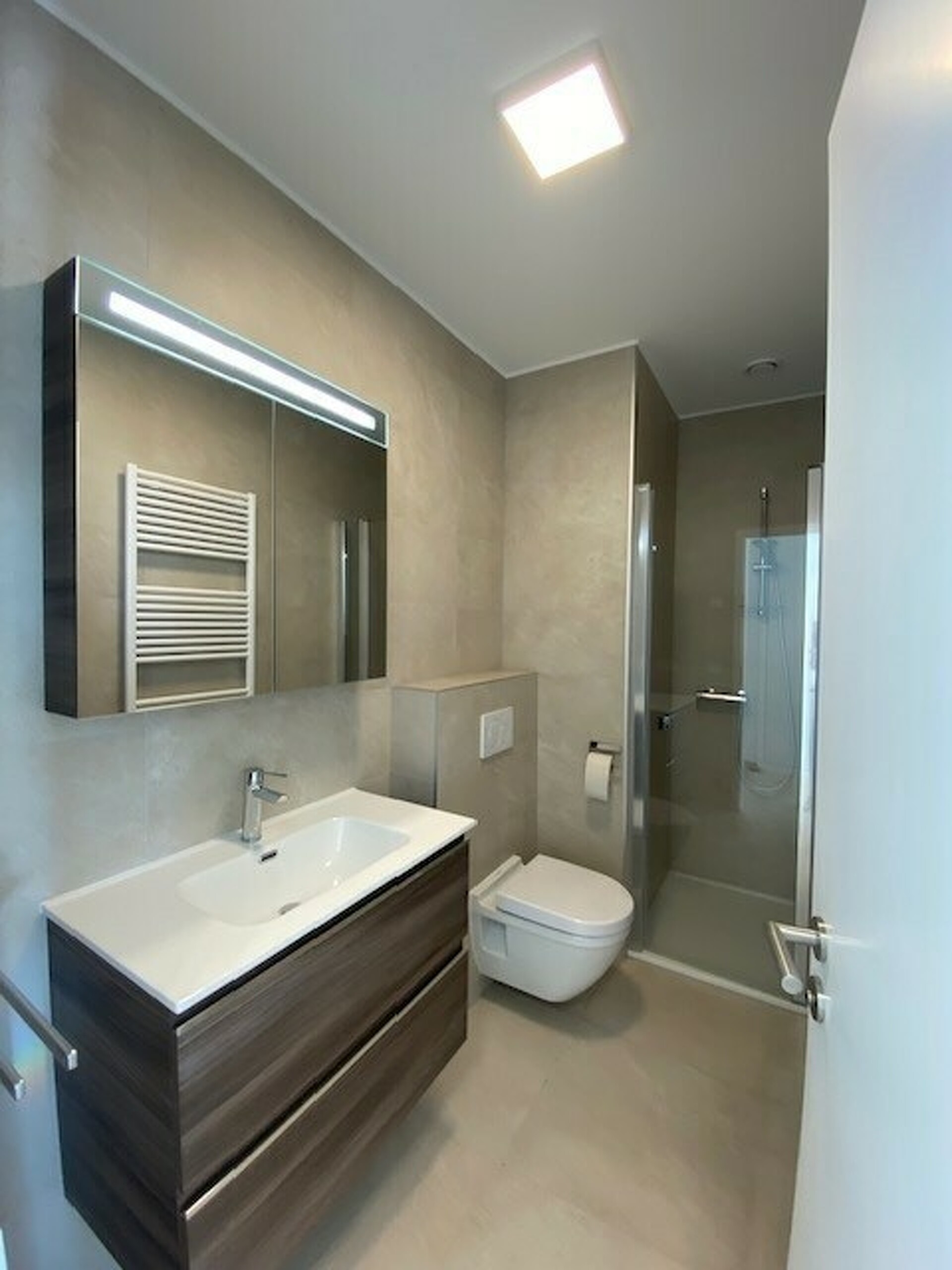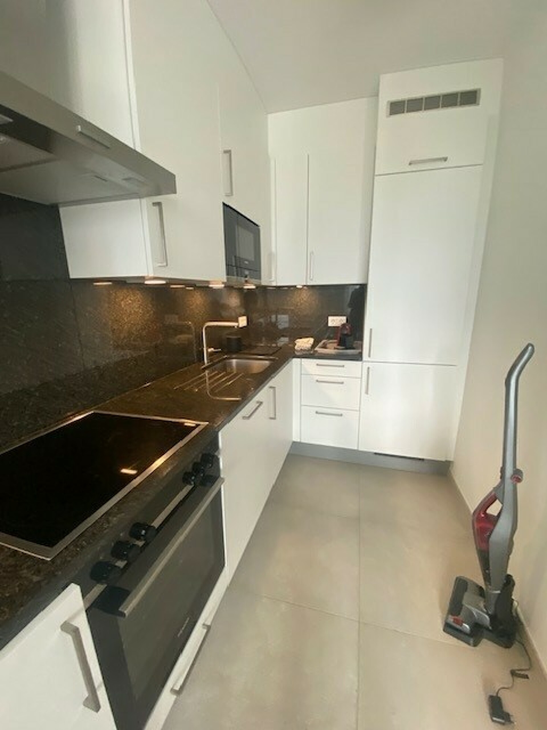 Entrée avec placard intégré, séjour avec une belle cuisine équipée et Loggia, 1 chambre à coucher avec placard intégré et salle de douche.